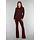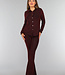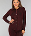 Diese Bluse ist aus einem feinen Stretch-Stoff gefertigt. Sie hat lange Ärmel und einen Kragen. Auf der Vorderseite befindet sich ein Knopfverschluss, der aus sechs goldenen Knöpfen besteht. Der Stoff des Oberteils ist mit einem glitzernden Zickzack-Muster verziert.