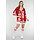 Dieses Oberteil ist aus rotem Stoff gefertigt und vollständig mit Pailletten verziert. Das Modell hat eine Oversize-Passform und einen sportlichen Jersey-Look. Der Ausschnitt ist V-förmig und mit einem kontrastierenden weißen Rand versehen. Die kurzen Ärmel sind am Saum mit weißen Streifen verziert. Auf der Vorderseite ist ein kontrastierender Aufdruck mit der Nummer 01 und Sternen zu sehen. Auf der Rückseite ist der Schriftzug „Dream Team” mit der Nummer 01 angebracht.