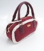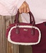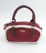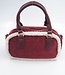 Diese rote Handtasche ist aus Wildleder gefertigt und mit einem weißen Teddyfellbesatz an den Rändern verziert. Das Design verfügt über zwei stabile Griffe aus burgunderrotem Kunstleder und einen abnehmbaren, extra langen Schulterriemen, sodass die Tasche sowohl in der Hand als auch als Crossbody-Tasche getragen werden kann. Die Oberseite ist mit einem goldfarbenen Reißverschluss und goldfarbenen Ringen versehen. Dank ihrer kompakten Form ist die Tasche perfekt für Ihre täglichen Essentials.