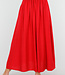 Dieser rote Maxirock hat eine gerade, weite Passform. Der Rock fällt bis zu den Knöcheln und ist aus einem geschmeidigen, leichten Stoff in Leinenoptik gefertigt. Der Rock hat Taschen und die Taille ist mit einem Gummizug versehen. Ein perfekter Basic-Rock für die Sommermonate!