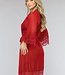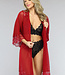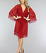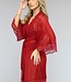 Dieser Kimono hat einen durchsichtigen Netz-Look und fällt bis zur Mitte des Oberschenkels. Er hat eine sehr schöne rote Farbe. Die Ärmel sind lang und fallen locker. An der Taille befindet sich auf jeder Seite eine Schlaufe, durch die Sie das mitgelieferte Taillenband stecken können, wenn Sie möchten. Durch dieses Band können Sie wählen, ob Sie den Kimono offen oder geschlossen tragen möchten. Die Ärmelbündchen sind mit Spitze verziert.