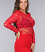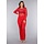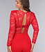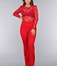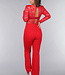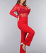 Roter Stretch-Overall mit Spitze und geraden Beinen
