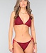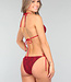 Dieses 2-teilige Bikini-Set ist aus einem roten Spitzenstoff gefertigt. Das Oberteil hat ein Dreiecksdesign und kann sowohl am Rücken als auch im Nacken mit Trägern nach Belieben gebunden werden. Das Oberteil ist mit herausnehmbaren Polstern ausgestattet. Das Unterteil hat eine freche Form und ist an beiden Seiten mit einer Schleife verziert. Das Tolle an diesem Set ist, dass es mit einem passenden Wickelrock geliefert wird, so dass Sie sofort ein passendes Cover-up haben!