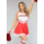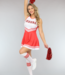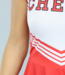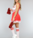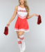 Dieses Kleid ist wirklich süß! Es ist ärmellos und hat einen Rundhalsausschnitt. Der Rock fällt schön weit und ist in Falten gelegt. Auf der Büste steht in roten Buchstaben CHEERS. Die Rückseite des Kleides ist einfarbig rot. Die Socken sind weiß und haben drei rote Streifen am oberen Ende. Inklusive Pompons.