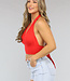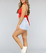 Dieses niedliche Crop-Top ist aus einem Stretch-Stoff gefertigt, der es sehr angenehm zu tragen macht. Es sitzt gut und hat eine Neckholderform. Das Top ist kurz geschnitten und hat eine Schleife am Rücken, die man selbst binden kann.