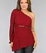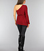 Dieses Top ist aus einem glitzernden Stoff gefertigt. Das Oberteil ist sehr dehnbar und hat einen einarmigen Schnitt. Außerdem hat es eine asymmetrische Form und eine Schulterpolsterung auf einer Seite. Es hat eine süße Rüsche am unteren Ende des Ärmels und ein elastisches Detail an der Taille.
