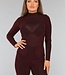 Dieses Top ist aus einem feinen Stretch-Stoff gefertigt. Der Stoff des Tops ist wunderschön mit einem glitzernden Zickzack-Muster verarbeitet. Das Top hat lange Ärmel und einen hohen Kragen.