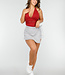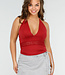 Dieses stilvolle rote Neckholder-Top hat einen tiefen V-Ausschnitt und eine figurbetonte Passform, die der Silhouette schmeichelt. Die Taille wird durch ein durchscheinendes Spitzenband akzentuiert, das einen subtilen, verspielten Effekt erzeugt. Das Top hat einen offenen Rücken und kann im Nacken gebunden werden. Der weiche, dehnbare Stoff bietet Komfort und Bewegungsfreiheit. Ideal zum Kombinieren mit hoch taillierten Hosen oder Röcken für einen trendigen und selbstbewussten Look.