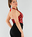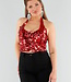 Dieses rote Neckholder-Top ist vollständig mit funkelnden Pailletten bedeckt, die für einen luxuriösen und festlichen Look sorgen. Der gerade Saum und die figurbetonte Passform betonen die Silhouette, während sich die weiche Innenseite angenehm auf der Haut anfühlt. Perfekt für Partys, Abendessen oder Ausgehabende.