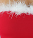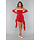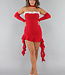 Dieses Kleid ist aus einem gerippten roten Stoff gefertigt und trägerlos geschnitten. Das Kleid fällt über das Gesäß und ist mit einem Rüschenband abgeschlossen. Das Kleid wird mit passenden Handschuhen geliefert. Um den Hals befindet sich ein Kropfband, das hinten am Kleid befestigt ist. Das Kleid ist sehr dehnbar und lässt sich daher leicht an- und ausziehen.