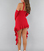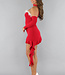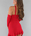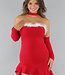 Rotes Weihnachtskleid aus geripptem Stoff mit Rüschen