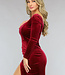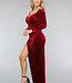 Dieses rote Velourskleid ist eine perfekte Wahl für besondere Anlässe. Der weiche Veloursstoff und der hohe Schlitz sorgen für einen luxuriösen Look. Das Kleid hat einen verdeckten Reißverschluss auf der Rückseite. Das Kleid hat lange Ärmel, einen weiten herzförmigen Ausschnitt und einen hohen Seitenschlitz. Außerdem hat das Kleid vorgeformte Cups, so dass kein BH getragen werden muss. Das Kleid fällt bis zum Boden und hat einen hohen Stretchanteil. Dieses Kleid ist perfekt für Partys, Hochzeiten und andere schicke Veranstaltungen.