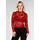 Dieses Oberteil ist aus rotem Mesh-Material mit einer vollständig aus Spitze bestehenden Struktur gefertigt. Das Design hat einen hohen, runden Ausschnitt und lange Ärmel aus transparenter Spitze. Das Oberteil liegt eng am Oberkörper an und hat einen geraden Saum. Das Modell fällt etwas kürzer aus und endet etwa auf Taillenhöhe. Die Spitze hat ein durchgehendes Blumenmuster, das über das gesamte Oberteil sichtbar ist, einschließlich der Ärmel und der Vorderseite.