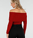 Dieses rote Off-Shoulder-Glitzer-Oberteil ist aus einem bequemen Stretchstoff gefertigt und hat lange Ärmel. Der Stoff hat durch die Glitzerverzierung einen dezenten Schimmer. Das Off-Shoulder-Modell sorgt für einen eleganten Look und schmiegt sich schön an den Körper an.