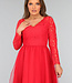 Dieses wunderschöne Kleid ist perfekt für besondere Anlässe. Das Kleid ist lang und hat ein langärmeliges Spitzenmieder. Der Ausschnitt hat einen V-Ausschnitt mit Wellenkanten. Der Rock des Kleides ist aus Tüll, aber wegen des Unterrocks ist das Kleid nicht durchsichtig. Auf der Rückseite des Kleides befindet sich ein blinder Reißverschluss, der das An- und Ausziehen des Kleides erleichtert.