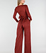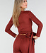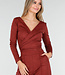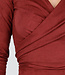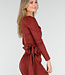 Dieses rote Wickeloberteil hat einen weichen Wildleder-Look und einen eleganten V-Ausschnitt. Der Stoff enthält Stretch, wodurch das Oberteil schön sitzt und bequem zu tragen ist. Dank des Wickeldesigns schafft das Oberteil eine schmeichelhafte Passform, die die Silhouette betont.