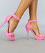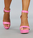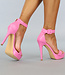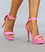 Diese schönen Sandalen haben eine Lederoptik. Sie haben einen geschlossenen Absatz mit einem Riemen um den Knöchel mit einem verstellbaren Schnallenverschluss. Ein Riemen verläuft über den Vorderfuß, der dafür sorgt, dass Sie nicht nach vorne rutschen, außerdem haben sie einen Peeptoe und einen Stilettoabsatz. Die Sandale ist außerdem mit einem Plateau ausgestattet.