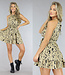Dieses Sommerkleid hat einen Panther-Print und niedliche Rüschendetails. Das Kleid hat außerdem einen elastischen Bund und einen Gürtel, der eine schöne Sanduhr-Figur zaubert.