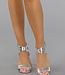 Diese Sandalen sind aus einem Material in Lederoptik gefertigt und haben einen Peeptoe. Sie haben einen stabilen Blockabsatz und quer über den Vorderfuß verlaufen schmale Riemen, die sich manchmal an verschiedenen Stellen kreuzen. Die Sandalen haben einen offenen Absatz und die Zehenkappe ist quadratisch.
