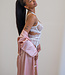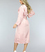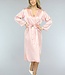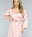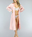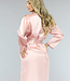 Dieser Kimono hat eine Satinoptik und fällt bis zur Hälfte des Unterschenkels. Er hat eine sehr schöne rosa Farbe. Die Ärmel sind lang und fallen locker. An der Taille befindet sich auf jeder Seite eine Schlaufe, durch die Sie auf Wunsch das mitgelieferte Taillenband stecken können. Durch dieses Band können Sie wählen, ob Sie den Kimono offen oder geschlossen tragen möchten.