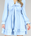 Das hellblaue Kleid mit Rüschen und geraffter Taille ist ein wunderschönes Kleidungsstück, das jede Frau süß und feminin aussehen lässt. Die helle Farbe des Kleides verleiht einen frischen Look und die Rüschen sorgen für einen verspielten Effekt.