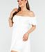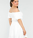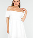 Dieses elegante Off-Shoulder-Kleid in Weiß ist ein Muss für Ihre Garderobe. Die Verwendung eines geschmeidigen Stretchmaterials sorgt für einen bequemen Sitz und viel Bewegungsfreiheit. Die elastischen Träger akzentuieren die Taille. Dieses Kleid lässt sich leicht mit Sandalen oder Absätzen kombinieren.