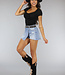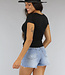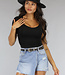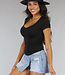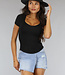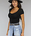 Dieses Oberteil aus Stretch-Stoff hat einen weiten Ausschnitt und kurze Ärmel. Das Oberteil ist dehnbar und hat ein plissiertes Detail an der Seite. Außerdem ist das Oberteil unifarben, wodurch es leicht zu kombinieren ist.