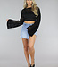 Dieses Bolero-Crop-Top hat ein gehäkeltes Design und lange, ausgestellte Ärmel. Sie können ein Basic-Set darunter tragen. Dieses Top ist perfekt für Festivals oder Sommertage!