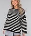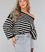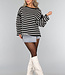 Der Pullover hat einen weiten Rundhalsausschnitt, so dass Sie ihn schulterfrei tragen können. Außerdem hat er lange Ärmel, die weit ausgestellt sind. Der Pullover hat ein Streifenmuster und ist schön oversized. Dieser Pullover ist ideal für die kälteren Tage!