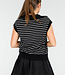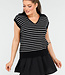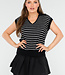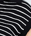 Dieser schwarze Strickpulli mit Streifenmuster ist ideal für legere Anlässe. Der V-Ausschnitt verleiht ihm einen femininen Touch, während die kurzen Ärmel Bewegungsfreiheit bieten. Am unteren Ende befindet sich ein elastischer Rippenabschluss, der für eine gute Passform sorgt. Das leichte Material dieses Pullovers ist ideal für die wärmeren Monate.