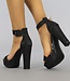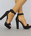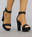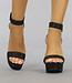 Diese Glitzersandalen haben einen klobigen Absatz und ein Plateau. Das Plateau lässt sie etwas höher erscheinen, als sie tatsächlich sind. Die Sandalen haben einen Peeptoe und einen geschlossenen Absatz. Um den Knöchel verläuft ein Riemen mit verstellbarem Schnallenverschluss. Ideal für die Feiertage!