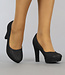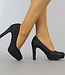Schöne glänzende Glitzerpumps mit einem stabilen Absatz. Die Pumps haben ein Plateau, das den Absatz etwas höher erscheinen lässt, als er tatsächlich ist. Sie sind schwarz und mit einem harten Glitzerstoff überzogen, so dass sich der Glitzer nicht ablöst.