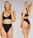 Schwarzer Rippenbikini mit hoher Taille