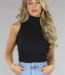 Dieses Oberteil ist aus einem robusten Rippstoff gefertigt, hat keine Ärmel und einen Rollkragen. Das Oberteil ist nicht kurz geschnitten.