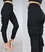 Die schwarze Cargohose mit Taschen ist eine trendige Hose, die perfekt für einen lässigen und coolen Look ist. Die Hose verfügt über mehrere Taschen an der Seite. Die Hose enthält Stretch und fällt als hohe Taille. Die Hose hat einen elastischen Bund und ist auch am unteren Ende elastisch.