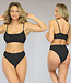 Stichworte: freches Bikiniunterteil mit hoher Taille, schwarzes hochgeschnittenes Unterteil, Basic, Strandmode, Bademode, Bademode