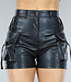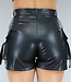 Schwarze Cargo-Shorts in Lederoptik mit hoher Taille
