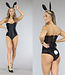 Dieses Kostüm besteht aus einem Bodysuit aus Satin, der sehr robust ist. Der Body ist mit Stäbchen besetzt und hat oben einen herzförmigen Ausschnitt. Auf der Rückseite des Bodys befindet sich eine Schnürung. Der mitgelieferte Hasenschwanz lässt sich auf der Rückseite des Bodys befestigen. Um den Look zu vervollständigen, können Sie die mitgelieferten Hasenohren dazu tragen.