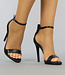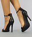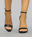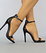 Diese schönen Sandalen haben eine Lederoptik. Sie haben einen geschlossenen Absatz mit einem schmalen Riemen um den Knöchel mit einem verstellbaren Schnallenverschluss. Über den Vorderfuß verläuft ein Riemen, der verhindert, dass man nach vorne rutscht. Sie haben außerdem eine Peeptoe und einen Stilettoabsatz.