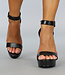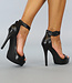 Diese schönen Sandalen haben eine Lederoptik. Sie haben einen geschlossenen Absatz mit einem Riemen um den Knöchel mit einem verstellbaren Schnallenverschluss. Ein Riemen verläuft über den Vorderfuß, der dafür sorgt, dass Sie nicht nach vorne rutschen, außerdem haben sie einen Peeptoe und einen Stilettoabsatz. Die Sandale ist außerdem mit einem Plateau ausgestattet.