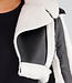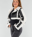 Diese schwarz-weiße, verkürzte Pelzjacke kombiniert einen coolen Look mit einer luxuriösen Verarbeitung. Die Jacke ist aus glattem Kunstleder gefertigt und hat ein kontrastierendes weißes Sherpa-Futter, das sich am Kragen, an den Ärmelbündchen und am Saum fortsetzt.