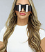 Diese Gläser haben ein durchgehendes Glas, das regenbogenfarben leuchtet. Die Beine haben eine schwarze Farbe. Diese Sonnenbrille ist perfekt für Festivals!