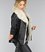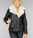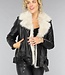 Schwarze Bikerjacke aus Kunstfell in Lederoptik