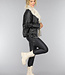 Diese Jacke ist aus einem Stoff in Lederoptik gefertigt. Das Futter besteht aus weichem Kunstpelz. Die Jacke hat einen Reißverschluss und einen Gürtel an der Unterseite. Die Jacke hat zwei seitliche Reißverschlusstaschen und eine Ziertasche am Boden. An den Ärmelenden befinden sich kleine Reißverschlüsse. Der Kunstpelzkragen ist mit Hilfe eines Reißverschlusses und Knöpfen abnehmbar.
