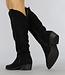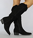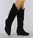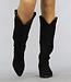 Schlüsselwörter: Cowboystiefel in Wildlederoptik, schwarze Cowboystiefel, hohe Stiefel, Blockabsatz, spitze Zehe, Reißverschluss