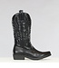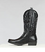 Diese Cowboystiefel in Lederoptik haben eine stilvolle spitze Spitze und einen kleinen Blockabsatz. Man muss von oben einsteigen, und da es einen Reißverschluss gibt, ist das sehr einfach. Die Stiefel sind oben abgerundet und mit einem Muster genäht.