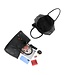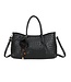 Diese schwarze Shopper-Tasche ist aus einem geflochtenen Material in Lederoptik gefertigt, das für einen strukturierten Look sorgt. Die Tasche verfügt über zwei stabile kurze Henkel und einen abnehmbaren Schulterriemen, sodass sie sowohl in der Hand als auch über der Schulter getragen werden kann. An der Vorderseite befindet sich ein dekorativer Anhänger mit einem schwarzen Federelement und Perlenverzierungen. Der geräumige Innenraum ist gefüttert und verfügt über mehrere Fächer, darunter ein Reißverschlussfach, für die übersichtliche Aufbewahrung persönlicher Gegenstände. Der breite Boden sorgt für zusätzliche Stabilität und Tragekomfort.