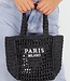 Diese schwarze, gehäkelte Handtasche ist ein echtes Must-have für einen Sommerlook. Die Tasche hat ein durchbrochenes Muster und ist mit einer auffälligen weißen "PARIS MILANO"-Stickerei auf der Vorderseite versehen. Dank der robusten gehäkelten Henkel liegt die Tasche bequem in der Hand. Perfekt für einen Shoppingtag oder einen lässigen Städtetrip.