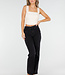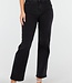 Diese schwarze Jeans hat eine hohe Taille und ein gerades Bein. Der Stretch-Denim hat eine gewaschene schwarze Farbe mit einem leicht matten Finish. Die Hose wird vorne mit einem Reißverschluss und einem Knopf geschlossen und hat fünf klassische Taschen. Das Modell fällt lang bis zum Schuh und folgt einer geraden Silhouette, ohne weit zu laufen. Der Bund ist mit Gürtelschlaufen versehen.