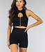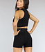 Diese zu niedlichen Sportleggings bestehen aus einem süßen schwarzen, dehnbaren Rippstoff. Die Leggings hat eine hohe Taille und eine schöne Kräuselung am Rücken.
